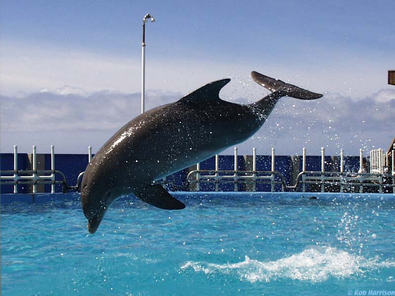 The morning was somewhat uneventful, if I remember correctly. Its hard to remember now, after so much has happened. I guess fatigue is part of it as well. Anyway, first session I was assigned to take pictures for Rimas last local, called her aloha local. She was lucky enough to get Akeakamai, in a good mood no less, so the session went well. I used Steves video camera to tape the entire session since Rima was staying for a few extra days to go around Honolulu with her mom and Steve was staying for another two weeks (he took the month long time block). This way, Steve could give Rima a copy of the session before she left for home. Rima sent Akeakamai on a few tandem behaviors with Phoenix, and had a number of great combinations that she tried out with her. All in all, the session was a good one.